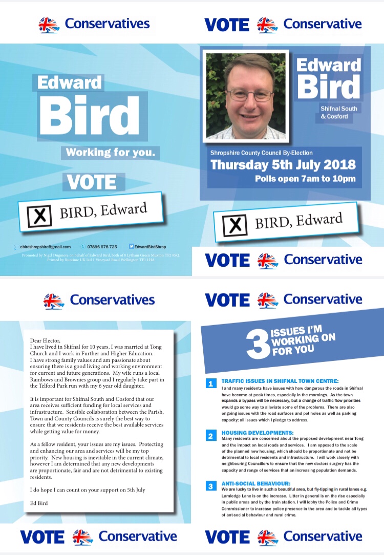 I believe that as part of a majority conservative county council that I will be able to influence policy in favour of our ward. I have already met with several councillors, independent and conservative from Tong, Shifnal, Wrekin and Shrewsbury and will continue to develop good working relationships for the benefit of Shifnal and Cosford.